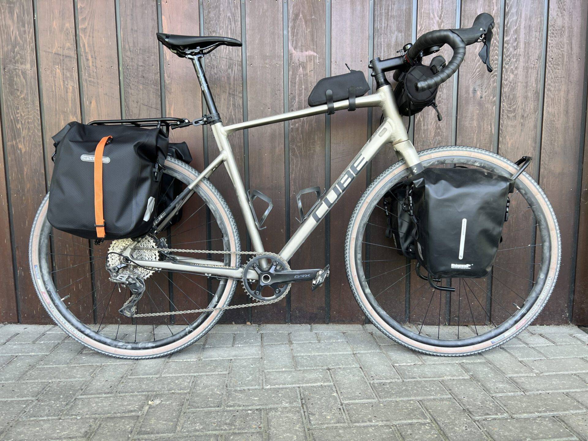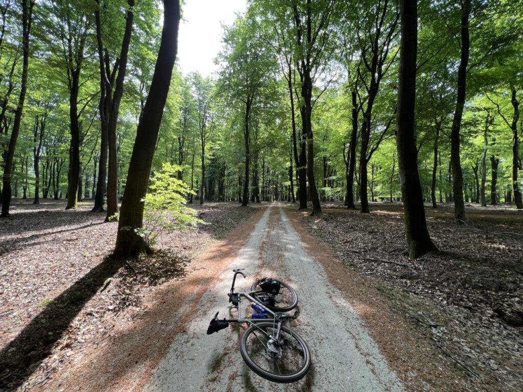 Wij hebben voor onze bikepacking trip voor de Vredestein Aventura gekozen. Deze gravelband biedt zowel op droge als natte ondergronden grip, heeft een optimale lekbescherming en een lage rolweerstand op geasfalteerde wegen. De band komt in twee breedtes, 38 en 44mm. Met onze keus voor de 38mm variant komen wij meer dan toereikend weg op alle ondergronden, behalve mul zand.