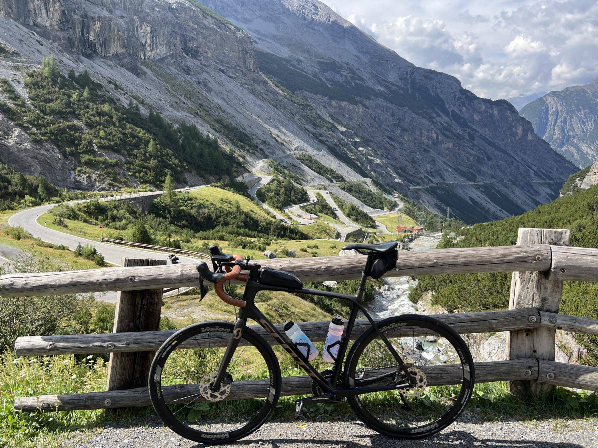 De eerste vijf kilometer is de Stelvio genadig. Tot aan de lawinegalerij gaat het rond de 5 procent omhoog. Een prima aanloop om in een rustig tempo aan de beklimming te beginnen. In het bos begint het steil te worden en is het even zoeken naar een ritme. Hier begint het met aftellen: 48 ‘tornanti’ brengen je naar de top. Nog 20 kilometer. Via enkele mooie Zuid-Tiroolse dorpjes, met de typische bouwstijl en cultuur voor deze regio, fietsen we steeds verder omhoog. Langs de weg staan her en der fonteintjes om de bidon bij te vullen.